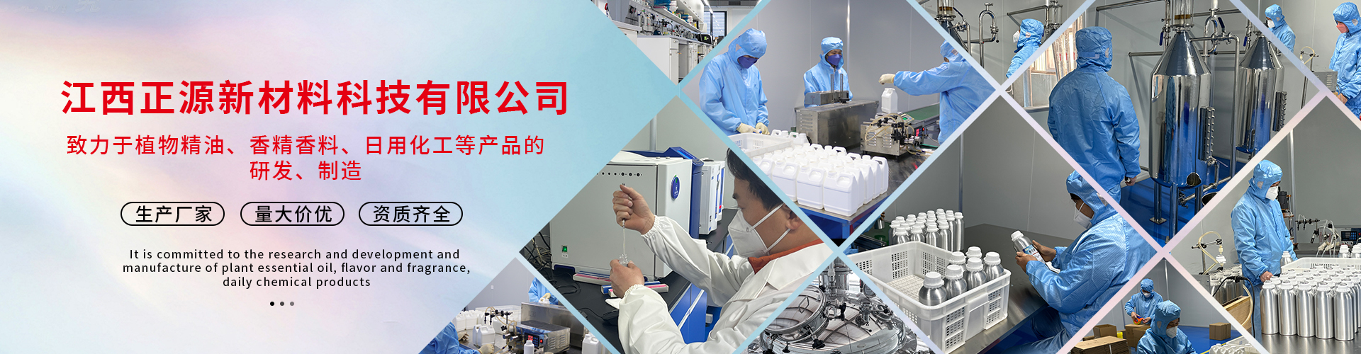 我公司多年來一直致力于日化化工、香料化工產品的研發,制造。公司長期以國內多所高等院校保持技術合作。現有員工50多人,其中高等級技術人員10人。廠房占地面積20畝,其中標準化生產車間1500多平米,倉儲、辦公1000多平米。化驗室配有高精良的檢測儀器和設備。